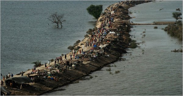 Above: Pakistan suffered from devastating floods in 2010, which left these Pakastanis trapped on a strip of land surrounded by water.